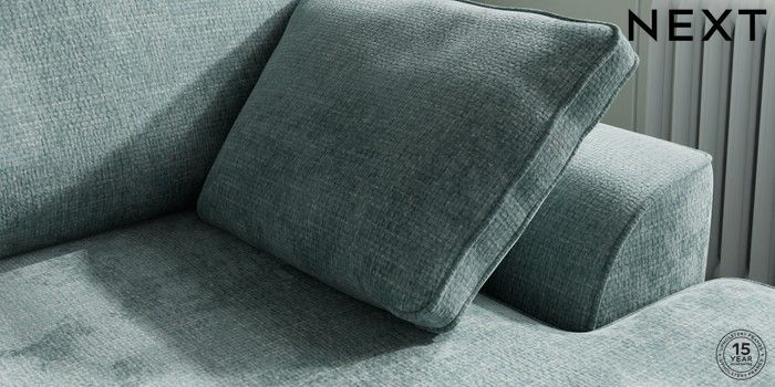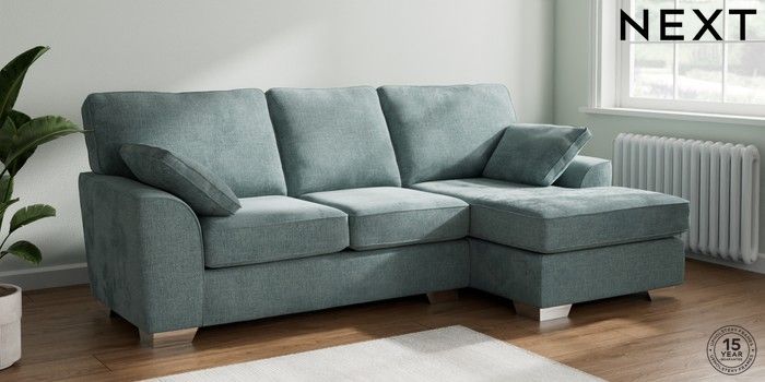 7.2.10 Stamford Medium Sofa Chaise - Right Hand Chunky Chenille Light Teal Green Large Square Angle - Chrome Metal | Made Click here to use our website with more accessibility support, for example screen readers
