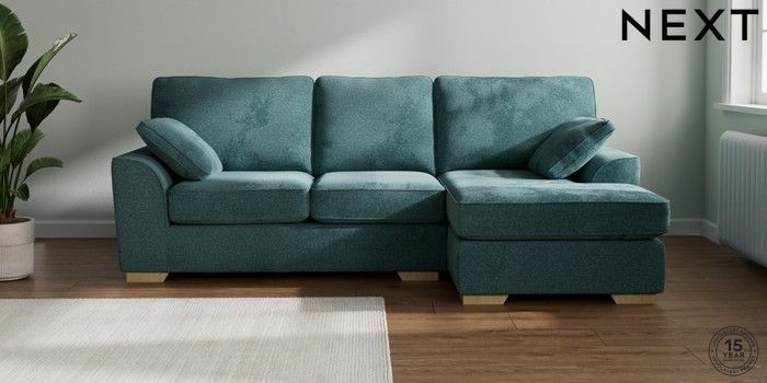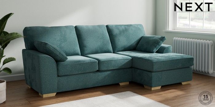 7.2.10 Stamford Medium Sofa Chaise - Right Hand Chunky Chenille Mid Teal Green Large Square Angle - Light | Made Click here to use our website with more accessibility support, for example screen readers