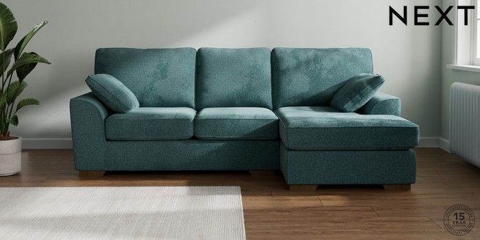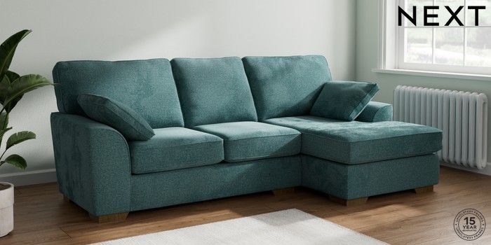 7.2.10 Stamford Medium Sofa Chaise - Right Hand Chunky Chenille Mid Teal Green Large Square Angle - Mid | Made Click here to use our website with more accessibility support, for example screen readers