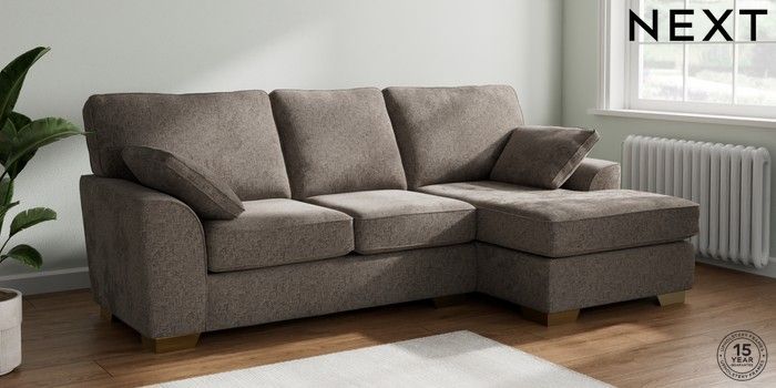 7.2.10 Stamford Medium Sofa Chaise - Right Hand Chunky Chenille Mink Brown Large Square Angle - Brushed Brass | Made Click here to use our website with more accessibility support, for example screen readers