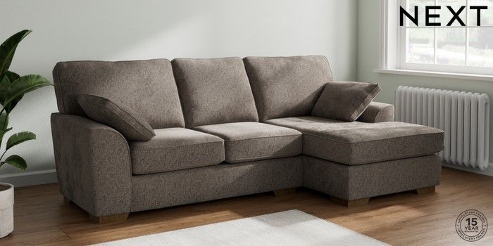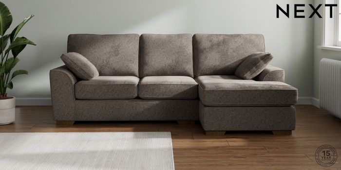 7.2.10 Stamford Medium Sofa Chaise - Right Hand Chunky Chenille Mink Brown Large Square Angle - Mid | Made Click here to use our website with more accessibility support, for example screen readers