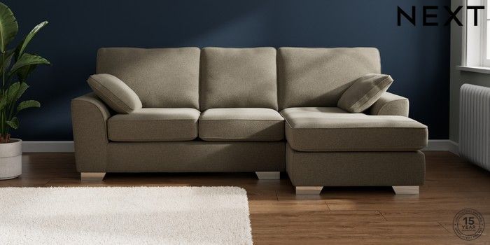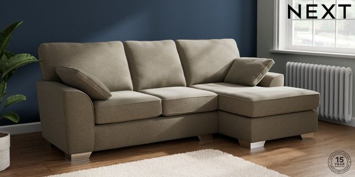 7.2.10 Stamford Medium Sofa Chaise - Right Hand Chunky Marl Light Olive Green Large Square Angle - Chrome Metal | Made Click here to use our website with more accessibility support, for example screen readers