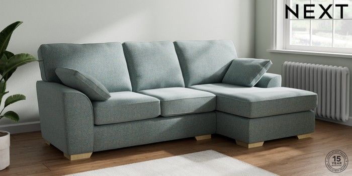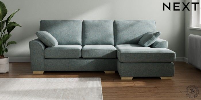 7.2.10 Stamford Medium Sofa Chaise - Right Hand Chunky Marl Mid Blue Large Square Angle - Light | Made Click here to use our website with more accessibility support, for example screen readers