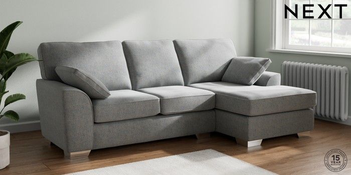 7.2.10 Stamford Medium Sofa Chaise - Right Hand Chunky Marl Mid Grey Large Square Angle - Chrome Metal | Made Click here to use our website with more accessibility support, for example screen readers