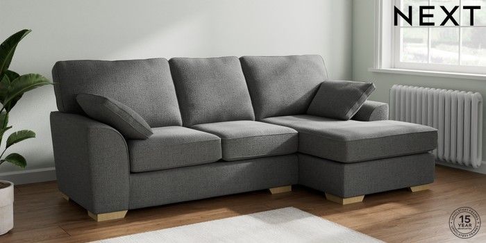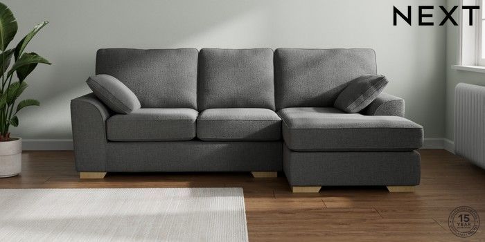 7.2.10 Stamford Medium Sofa Chaise - Right Hand Chunky Texture Dark Grey Large Square Angle - Light | Made Click here to use our website with more accessibility support, for example screen readers