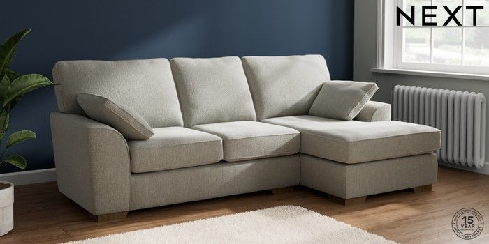 7.2.10 Stamford Medium Sofa Chaise - Right Hand Chunky Texture Dove Large Square Angle - Mid | Made Click here to use our website with more accessibility support, for example screen readers