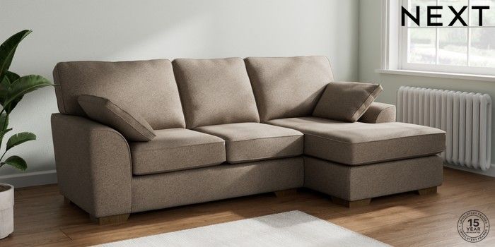 7.2.10 Stamford Medium Sofa Chaise - Right Hand Chunky Weave Dark Natural Large Square Angle - Mid | Made Click here to use our website with more accessibility support, for example screen readers