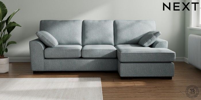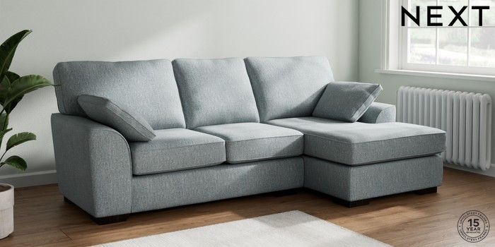 7.2.10 Stamford Medium Sofa Chaise - Right Hand Chunky Weave Mid Blue Large Square Angle - Dark | Made Click here to use our website with more accessibility support, for example screen readers