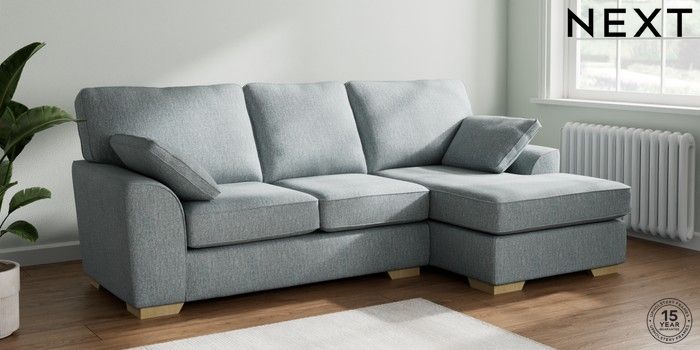 7.2.10 Stamford Medium Sofa Chaise - Right Hand Chunky Weave Mid Blue Large Square Angle - Light | Made Click here to use our website with more accessibility support, for example screen readers