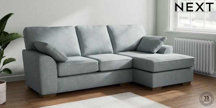 7.2.10 Stamford Medium Sofa Chaise - Right Hand Chunky Weave Mid Blue Large Square Angle - Mid | Made Click here to use our website with more accessibility support, for example screen readers