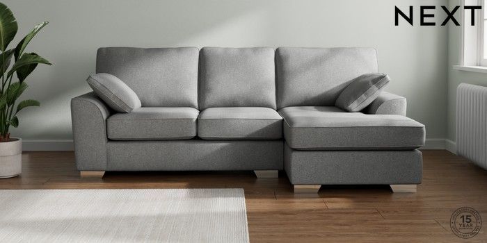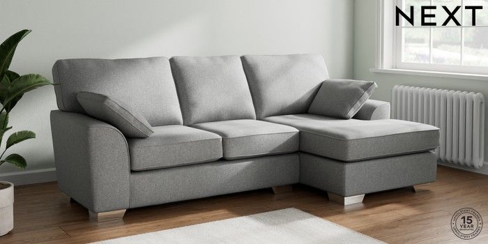 7.2.10 Stamford Medium Sofa Chaise - Right Hand Chunky Weave Mid Grey Large Square Angle - Chrome Metal | Made Click here to use our website with more accessibility support, for example screen readers
