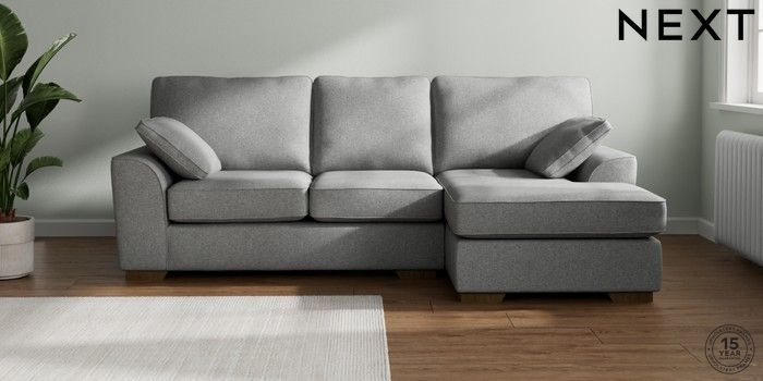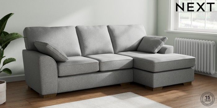 7.2.10 Stamford Medium Sofa Chaise - Right Hand Chunky Weave Mid Grey Large Square Angle - Mid | Made Click here to use our website with more accessibility support, for example screen readers