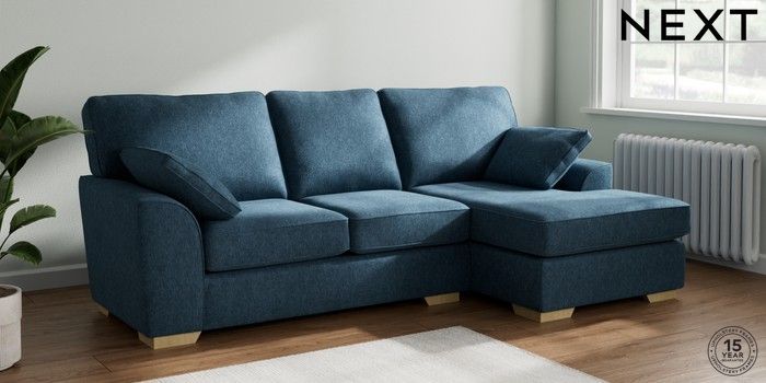 7.2.10 Stamford Medium Sofa Chaise - Right Hand Cotswold Chenille Dark Blue Large Square Angle - Light | Made Click here to use our website with more accessibility support, for example screen readers