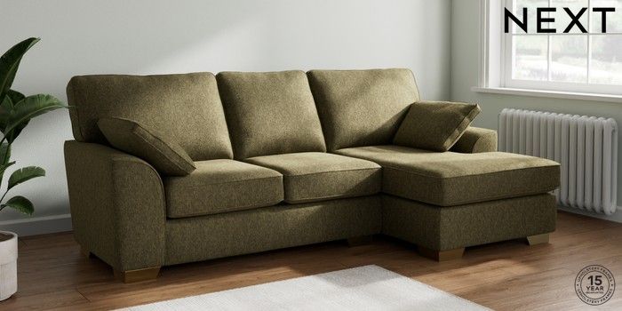 7.2.10 Stamford Medium Sofa Chaise - Right Hand Cotswold Chenille Dark Green Large Square Angle - Brushed Brass | Made Click here to use our website with more accessibility support, for example screen readers