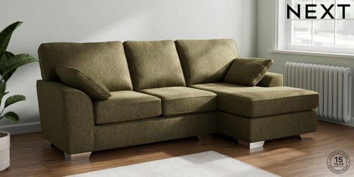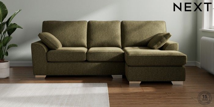 7.2.10 Stamford Medium Sofa Chaise - Right Hand Cotswold Chenille Dark Green Large Square Angle - Chrome Metal | Made Click here to use our website with more accessibility support, for example screen readers