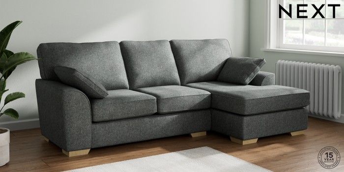 7.2.10 Stamford Medium Sofa Chaise - Right Hand Cotswold Chenille Dark Grey Large Square Angle - Light | Made Click here to use our website with more accessibility support, for example screen readers