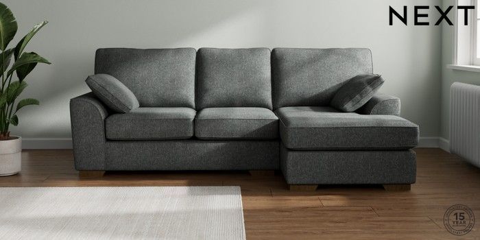 7.2.10 Stamford Medium Sofa Chaise - Right Hand Cotswold Chenille Dark Grey Large Square Angle - Mid | Made Click here to use our website with more accessibility support, for example screen readers