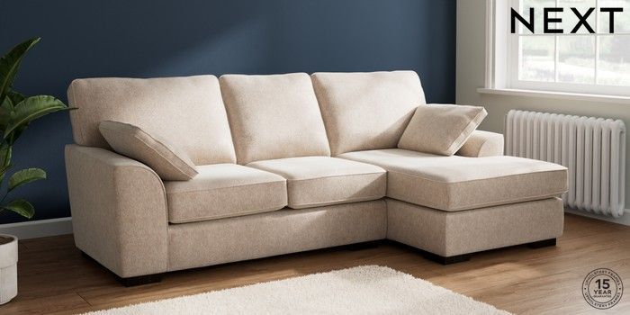 7.2.10 Stamford Medium Sofa Chaise - Right Hand Cotswold Chenille Light Natural Large Square Angle - Dark | Made Click here to use our website with more accessibility support, for example screen readers