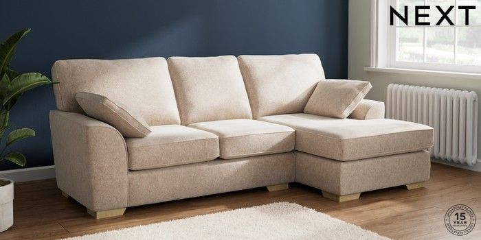 7.2.10 Stamford Medium Sofa Chaise - Right Hand Cotswold Chenille Light Natural Large Square Angle - Light | Made Click here to use our website with more accessibility support, for example screen readers