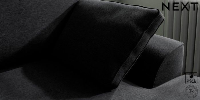 7.2.10 Stamford Medium Sofa Chaise - Right Hand Fine Chenille Easy Clean Black Large Square Angle - Light | Made Click here to use our website with more accessibility support, for example screen readers