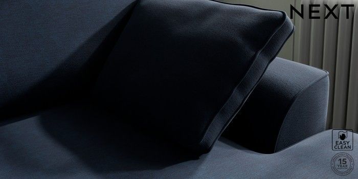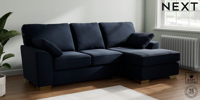7.2.10 Stamford Medium Sofa Chaise - Right Hand Fine Chenille Easy Clean Dark Navy Blue Large Square Angle - Brushed Brass | Made Click here to use our website with more accessibility support, for example screen readers
