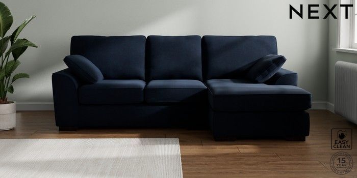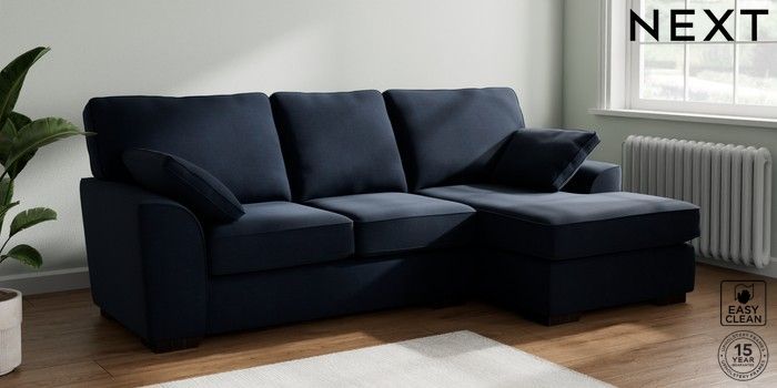 7.2.10 Stamford Medium Sofa Chaise - Right Hand Fine Chenille Easy Clean Dark Navy Blue Large Square Angle - Dark | Made Click here to use our website with more accessibility support, for example screen readers