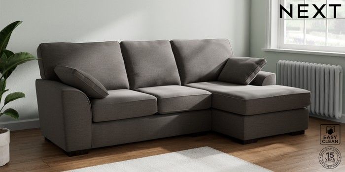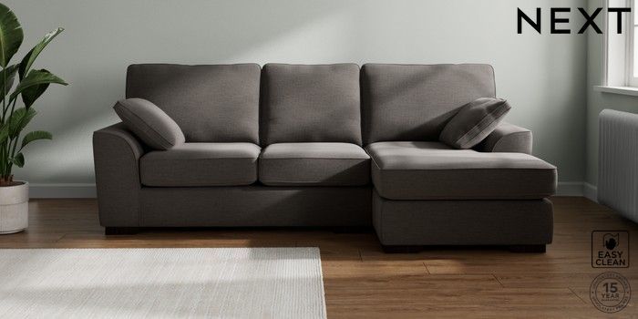 7.2.10 Stamford Medium Sofa Chaise - Right Hand Fine Chenille Easy Clean Dark Smoke Grey Large Square Angle - Dark | Made Click here to use our website with more accessibility support, for example screen readers
