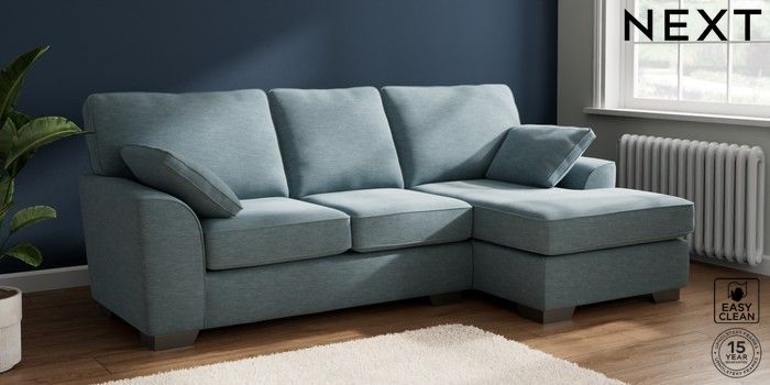 7.2.10 Stamford Medium Sofa Chaise - Right Hand Fine Chenille Easy Clean Mid Blue Large Square Angle - Gunmetal | Made Click here to use our website with more accessibility support, for example screen readers