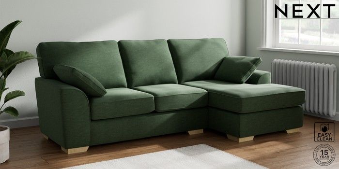 7.2.10 Stamford Medium Sofa Chaise - Right Hand Fine Chenille Easy Clean Mid Khaki Green Large Square Angle - Light | Made Click here to use our website with more accessibility support, for example screen readers