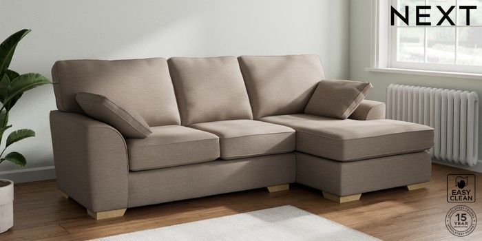 7.2.10 Stamford Medium Sofa Chaise - Right Hand Fine Chenille Easy Clean Mid Taupe Brown Large Square Angle - Light | Made Click here to use our website with more accessibility support, for example screen readers