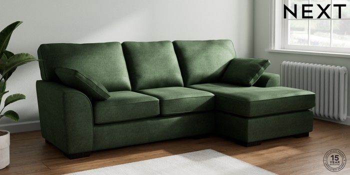 7.2.10 Stamford Medium Sofa Chaise - Right Hand Luxe Chenille Dark Green Large Square Angle - Dark | Made Click here to use our website with more accessibility support, for example screen readers