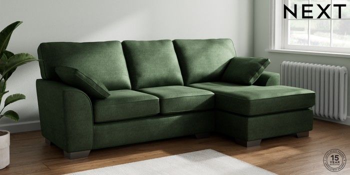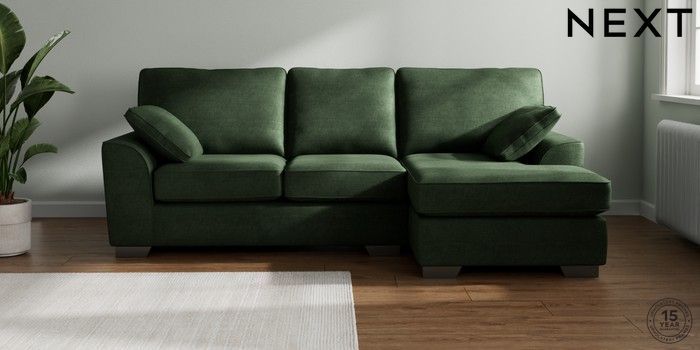 7.2.10 Stamford Medium Sofa Chaise - Right Hand Luxe Chenille Dark Green Large Square Angle - Gunmetal | Made Click here to use our website with more accessibility support, for example screen readers