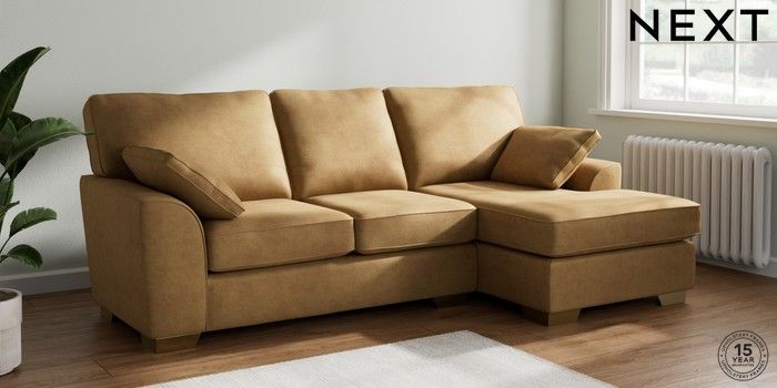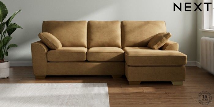 7.2.10 Stamford Medium Sofa Chaise - Right Hand Luxe Chenille Honey Yellow Large Square Angle - Brushed Brass | Made Click here to use our website with more accessibility support, for example screen readers