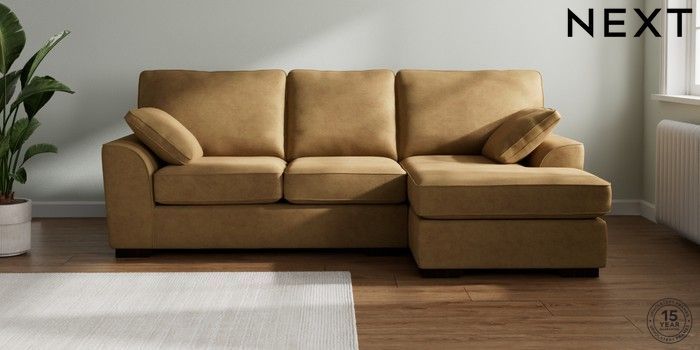 7.2.10 Stamford Medium Sofa Chaise - Right Hand Luxe Chenille Honey Yellow Large Square Angle - Dark | Made Click here to use our website with more accessibility support, for example screen readers