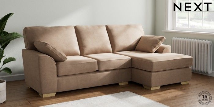 7.2.10 Stamford Medium Sofa Chaise - Right Hand Luxe Chenille Mid Natural Large Square Angle - Light | Made Click here to use our website with more accessibility support, for example screen readers