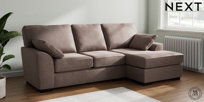 7.2.10 Stamford Medium Sofa Chaise - Right Hand Luxe Chenille Mink Brown Large Square Angle - Dark | Made Click here to use our website with more accessibility support, for example screen readers