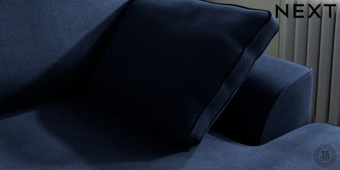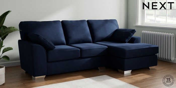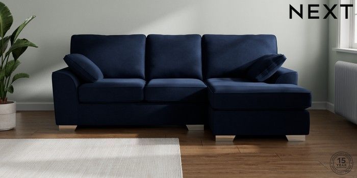 7.2.10 Stamford Medium Sofa Chaise - Right Hand Luxe Chenille Navy Blue Large Square Angle - Chrome Metal | Made Click here to use our website with more accessibility support, for example screen readers
