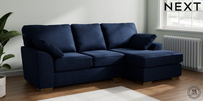 7.2.10 Stamford Medium Sofa Chaise - Right Hand Luxe Chenille Navy Blue Large Square Angle - Mid | Made Click here to use our website with more accessibility support, for example screen readers