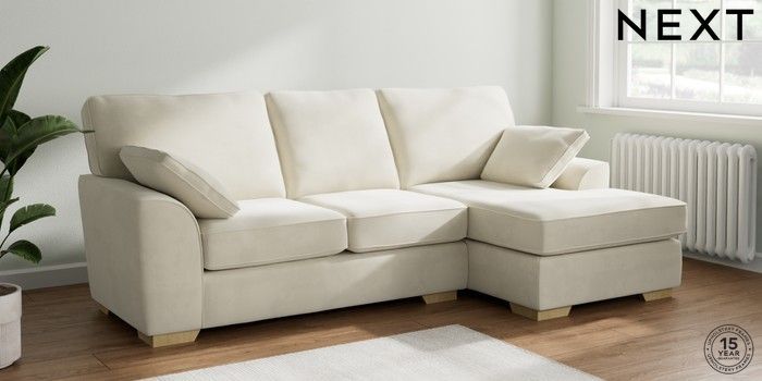 7.2.10 Stamford Medium Sofa Chaise - Right Hand Luxe Chenille Oyster Large Square Angle - Light | Made Click here to use our website with more accessibility support, for example screen readers
