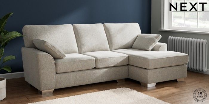 7.2.10 Stamford Medium Sofa Chaise - Right Hand Multi Weave Light Blue Large Square Angle - Chrome Metal | Made Click here to use our website with more accessibility support, for example screen readers
