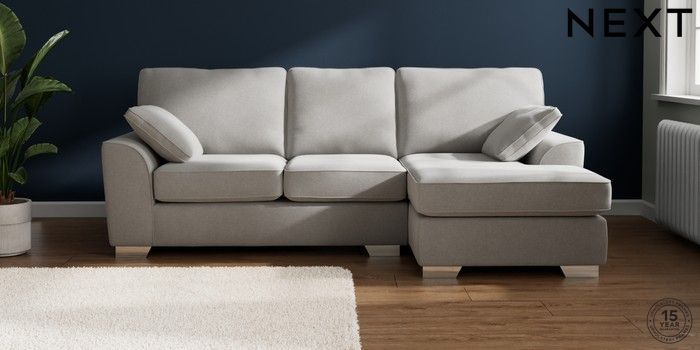 7.2.10 Stamford Medium Sofa Chaise - Right Hand Natural Mix Light Grey Large Square Angle - Chrome Metal | Made Click here to use our website with more accessibility support, for example screen readers