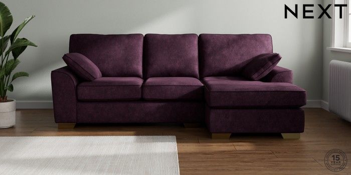 7.2.10 Stamford Medium Sofa Chaise - Right Hand Plush Chenille Dark Plum Purple Large Square Angle - Brushed Brass | Made Click here to use our website with more accessibility support, for example screen readers
