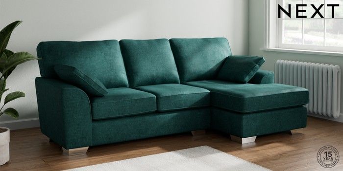 7.2.10 Stamford Medium Sofa Chaise - Right Hand Plush Chenille Dark Teal Green Large Square Angle - Chrome Metal | Made Click here to use our website with more accessibility support, for example screen readers