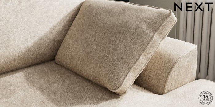 7.2.10 Stamford Medium Sofa Chaise - Right Hand Plush Chenille Light Natural Large Square Angle - Dark | Made Click here to use our website with more accessibility support, for example screen readers