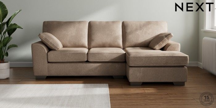 7.2.10 Stamford Medium Sofa Chaise - Right Hand Plush Chenille Mid Natural Large Square Angle - Gunmetal | Made Click here to use our website with more accessibility support, for example screen readers