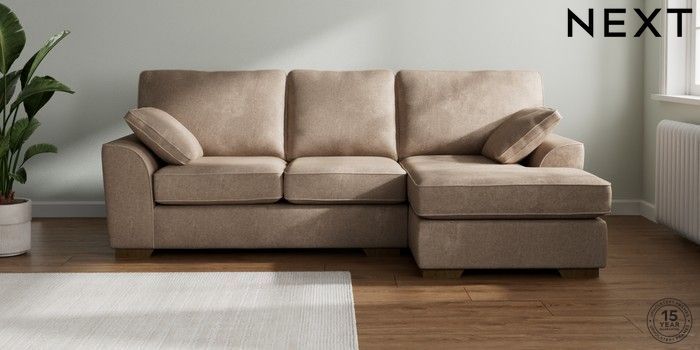 7.2.10 Stamford Medium Sofa Chaise - Right Hand Plush Chenille Mid Natural Large Square Angle - Mid | Made Click here to use our website with more accessibility support, for example screen readers