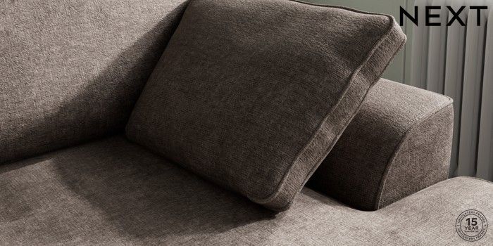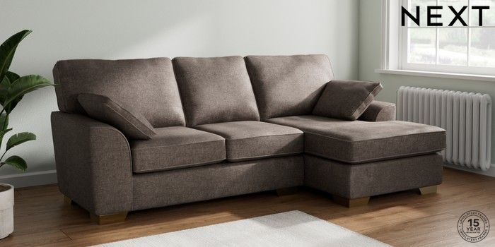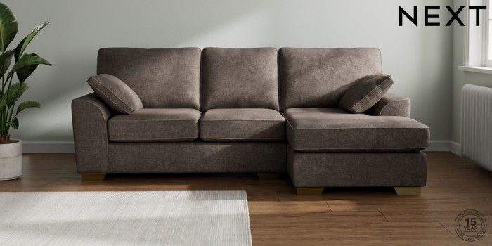 7.2.10 Stamford Medium Sofa Chaise - Right Hand Plush Chenille Mink Brown Large Square Angle - Brushed Brass | Made Click here to use our website with more accessibility support, for example screen readers