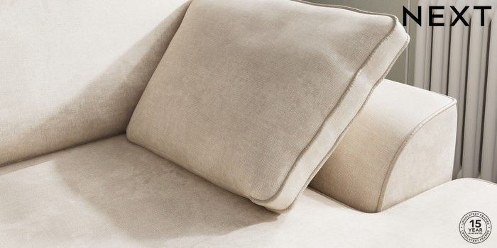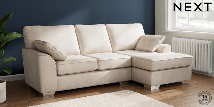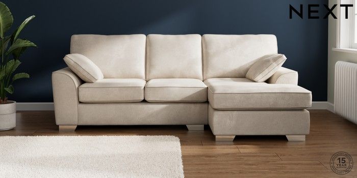 7.2.10 Stamford Medium Sofa Chaise - Right Hand Plush Chenille Oyster Large Square Angle - Chrome Metal | Made Click here to use our website with more accessibility support, for example screen readers