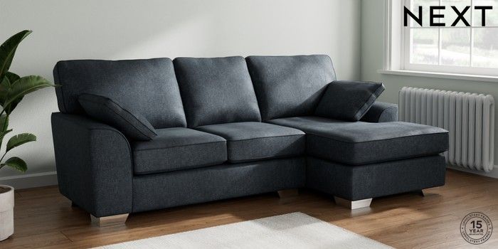 7.2.10 Stamford Medium Sofa Chaise - Right Hand Plush Chenille Slate Blue Large Square Angle - Chrome Metal | Made Click here to use our website with more accessibility support, for example screen readers