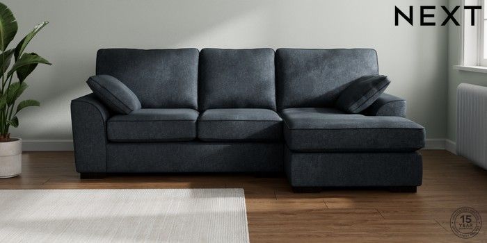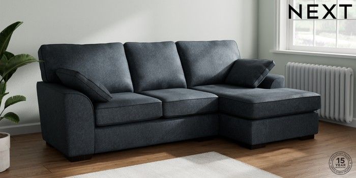 7.2.10 Stamford Medium Sofa Chaise - Right Hand Plush Chenille Slate Blue Large Square Angle - Dark | Made Click here to use our website with more accessibility support, for example screen readers